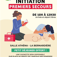 L'association Les rendez-vous Bernardins organise une initiation aux gestes de premiers secours le 21 mars de 10h à 12h30 à la salle Athéna (la Bernardière)