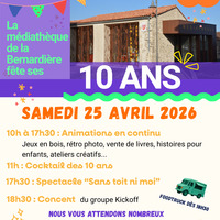Célébrons ensemble les 10 ans de la médiathèque de la Bernardière, le samedi 25 avril 2026 de 10h à 21h