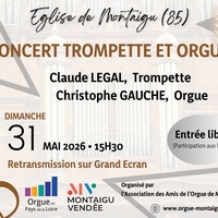 L’association « les Amis de l’Orgue de Montaigu » vous propose un beau concert autour de la Trompette et de l’Orgue à l’Eglise de Montaigu (Vendée), le Dimanche 31 Mai 2026 à 15h30.