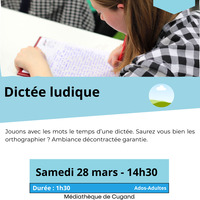 Le club Sourire d'Automne organise la "dictée pour tous" un jeudi matin par mois, de 10h15 à 12h, Salle de la Clairière à L'Herbergement.