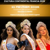 L'élection Miss Cultura Continental Francia aura lieu le 21 février 2026 à l'Espace Culturel du Doué (Cugand).